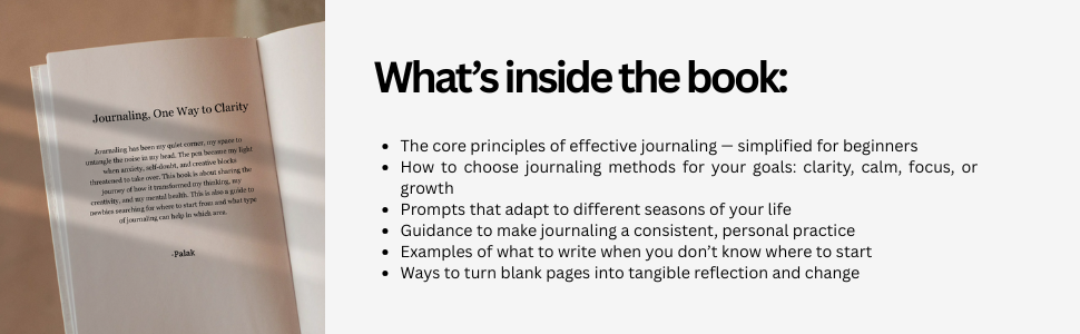 This book is for anyone who feels stuck in their thoughts, overwhelmed by stress, or unsure of where to begin with journaling. It’s written as a beginner’s guide, so you don’t need to be a writer or know any special techniques—just a notebook, a pen, and the willingness to show up for yourself.