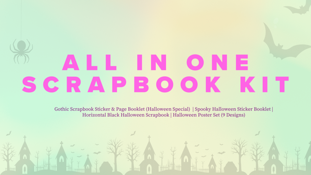 What You Get 📦 Gothic Scrapbook Sticker & Page Booklet (Halloween Special) – 17 pages filled with skulls, spooky architecture, gothic elements, and dark vintage designs. Spooky Halloween Sticker Booklet – Fun, eerie, and downright playful stickers to add personality to your projects. Horizontal Black Halloween Scrapbook – A stylish, ready-to-fill scrapbook with customizable pages & matching stickers. Halloween Poster Set (9 Designs) – Funky, funny, and frightfully fabulous posters perfect for wall art, decor, or journal inserts.